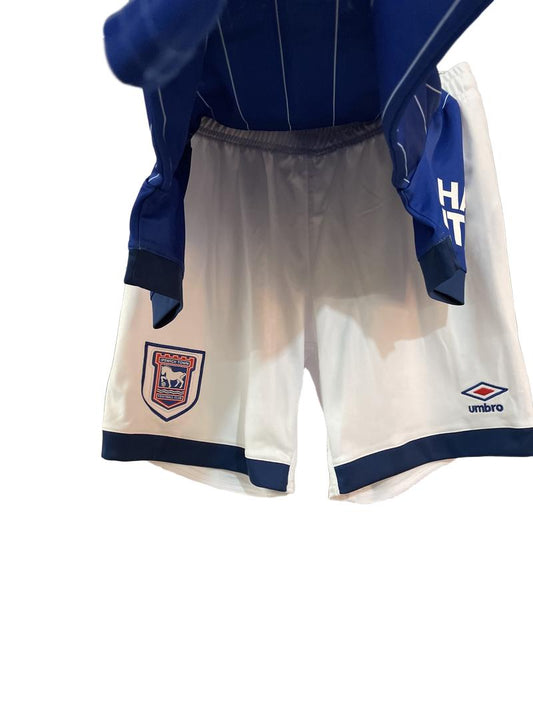 Preloved Umbro - Blue Ipswich Town FC Short-sleeved Wicking Athetic Top, And White Matching Athletic Shorts, YXL (12-13y)