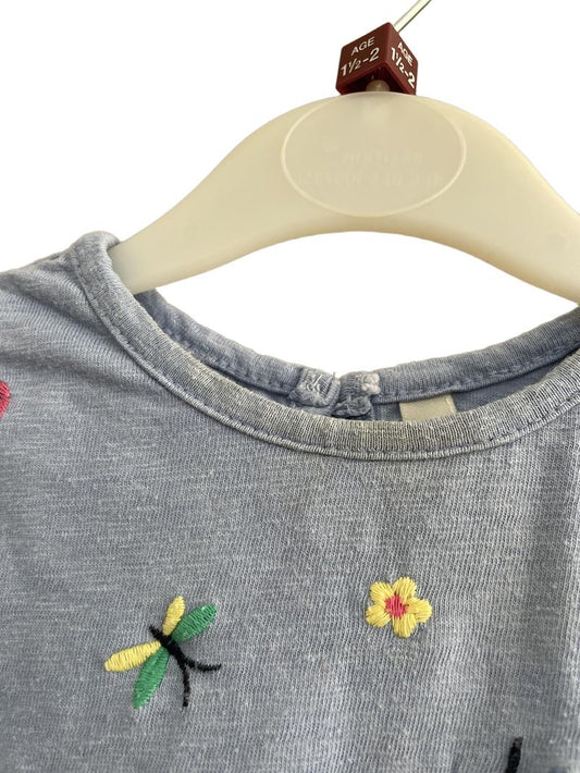Preloved E-Vie Angel - Blue Ruffle Sleeve Dress With Floral Embroidery (18-24m)