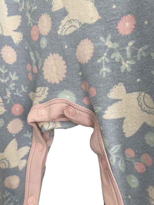 Preloved John Lewis - Blue Bird Floral Print Onesie Romper (18-24m)