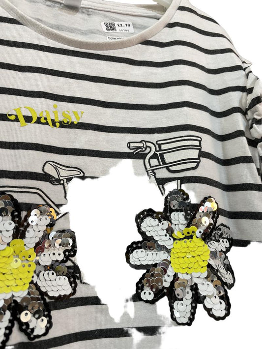 Preloved Idexe - White Navy Stripe Bicycle Sequin Daisy Long-sleeved T Shirt (5-6y)