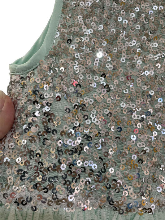 Preloved Monsoon - Dress - Sea Green Pastel Tulle Sleeveless Dress With Silver Sequins (5-6y)