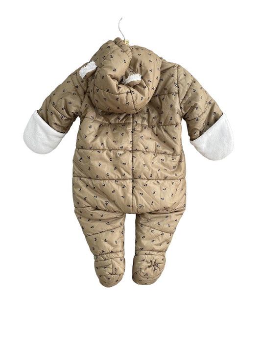 Preloved Petit Bateau - Beige Navy Anchor Pram Suit (6-12m)