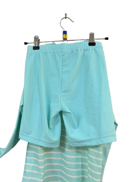 Preloved Polarn O. Pyret - Green Stripe Long-sleeved Rashie Sun Protection Top And Short Swimsuit (6-7y, 7-8y)