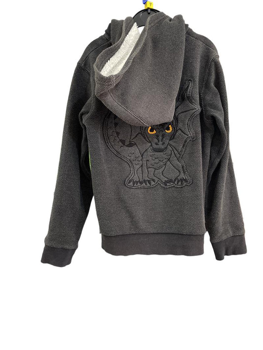 Preloved Polarn O. Pyret - Black Brown Knit Hoodie With Dragon On Back (6-7y, 7-8y)