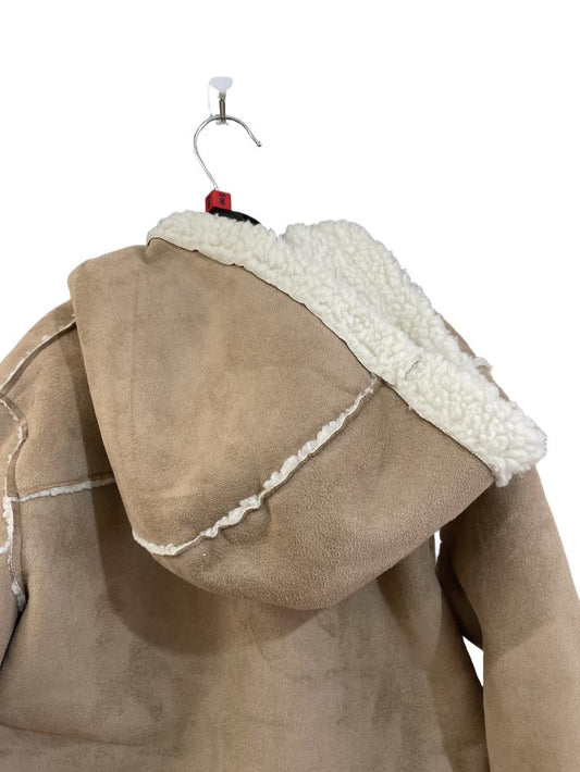 Preloved Neck & Neck - Jacket - Beige Suede Faux Sheepskin Hooded Parka (8-9y)