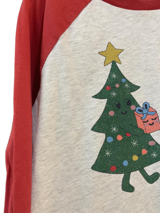 Preloved Mini Boden - Red Gray Christmas Tree Graphic Raglan Long-sleeved T Shirt (8-9y)