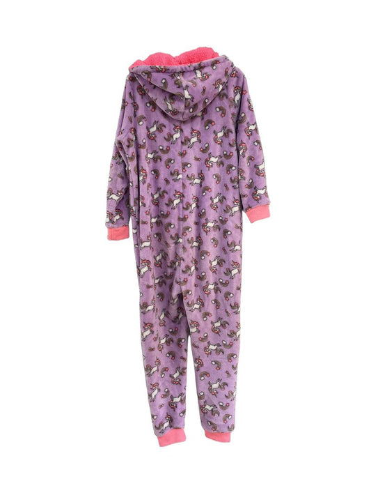 Preloved M&Co Kids - Purple Pink Fleece Unicorn Onesie (9-10y)