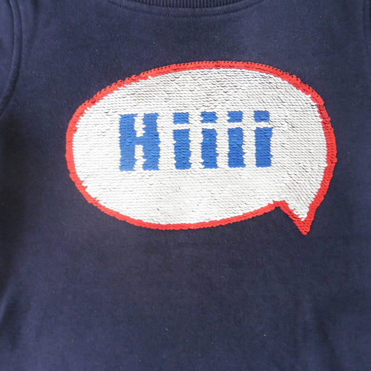 Preloved Joules navy Jumper with sequins 'Hiiii' bubble 9-10y
