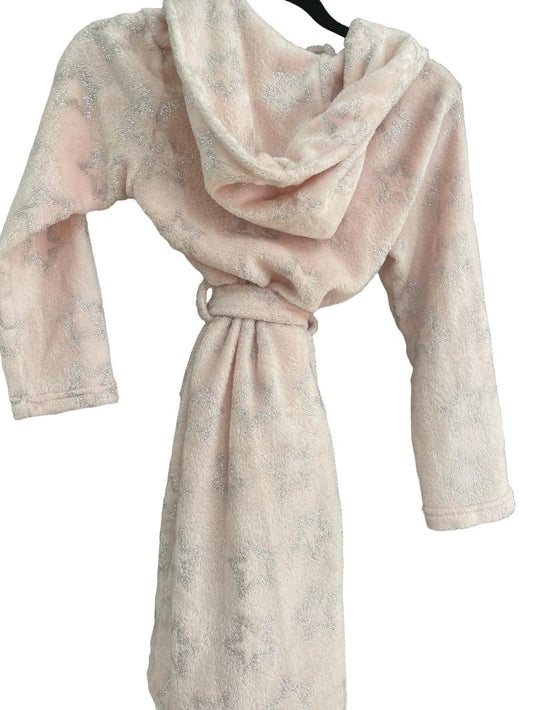 Preloved Lipsy London - Pink Fleece Bathrobe With Silver Sparkle Stars (9-10y) - Sleepwear