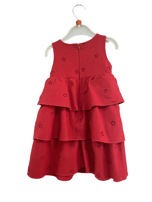 Preloved Mini Mode - Red Wool Blend Tiered Dress With Bow (9-12m)