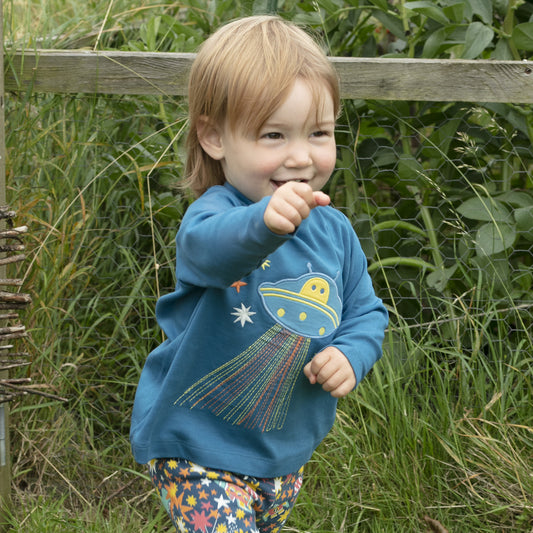 Piccalilly Kids Long Sleeve Fitted Top - Cosmic Weather