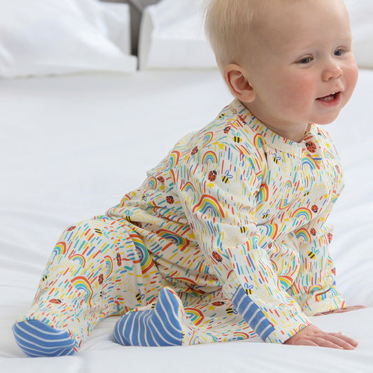 Piccalilly Zipped Footed Sleepsuit - Sun Shower