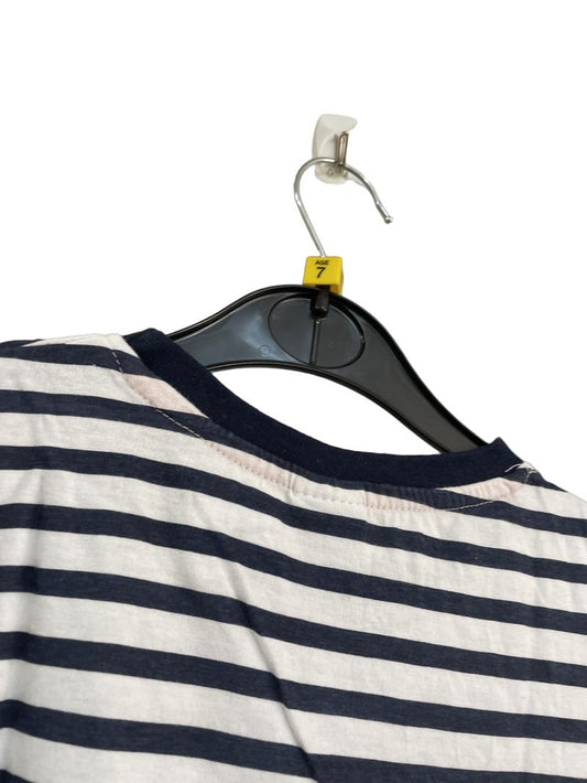 Preloved Joules - Blue White Stripe With Neon Embroidery Flutter Sleeve Top (7-8y)