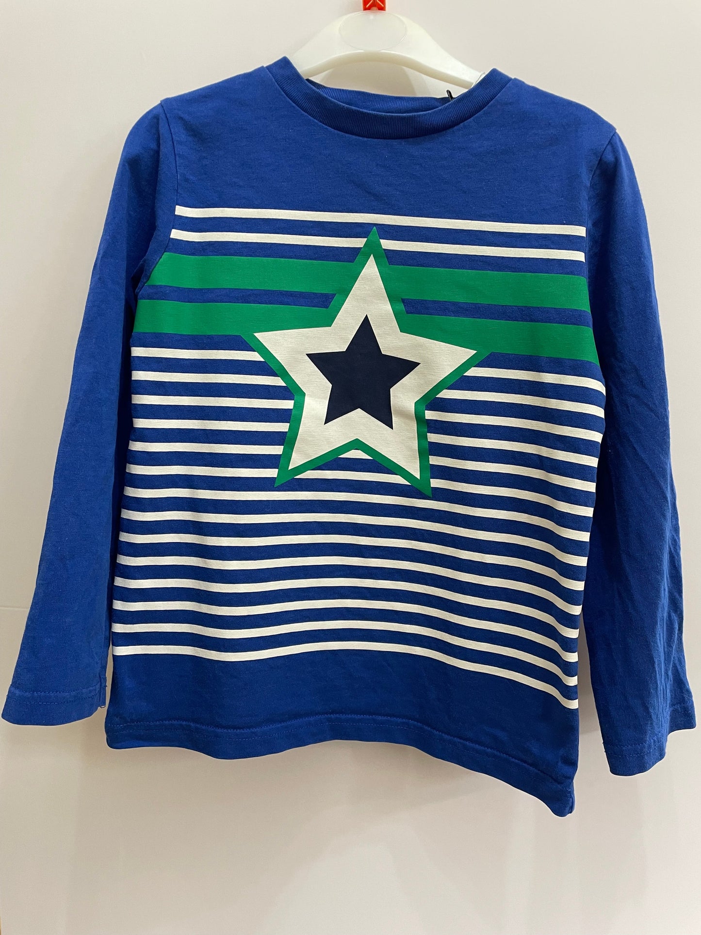 Preloved Mini Boden blue green star LS shirt 4-5y