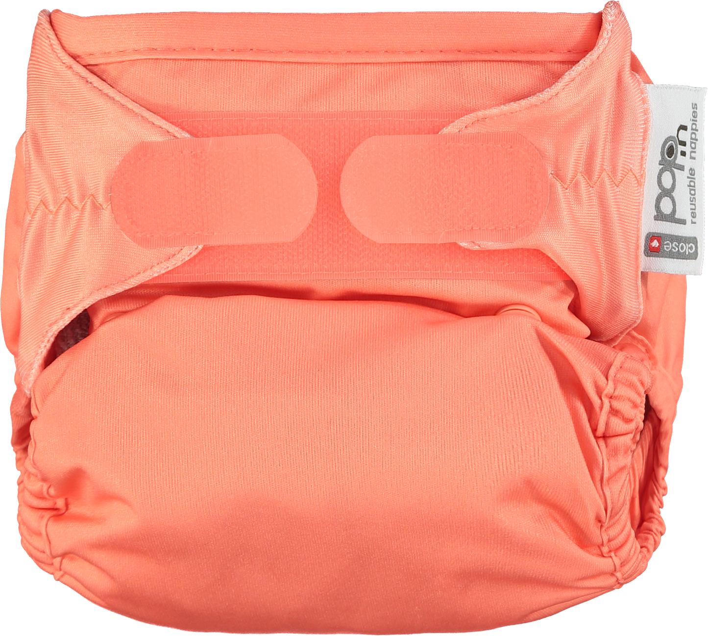 Unlike other nappies, Pop-in has a clever absorbent core in the waterproof outer shell which helps hold the wetness in the middle of the nappy reducing compression and leaking and allowing you a little longer between changes times when needed!