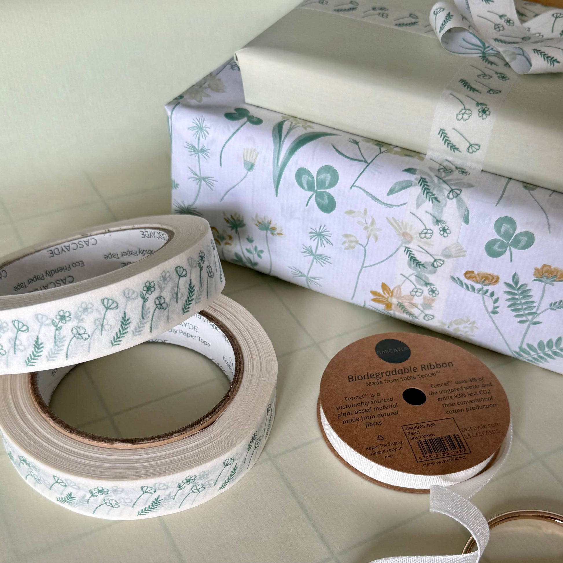 Green Floral Paper Tape 24mm - Eco Friendly Packing Tape