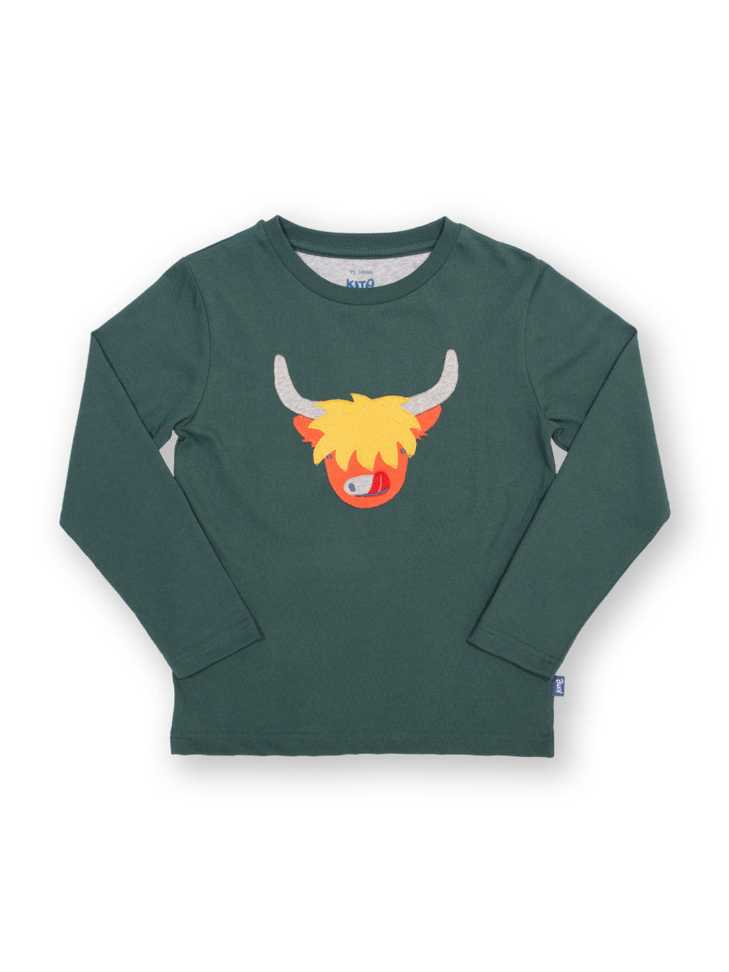 Inspired by our bovine buddies in the neighbouring New Forest, meet our cool cow t-shirt! This long-sleeved pine green top is awesome for pairing with so many of our trousers this season. Made from 100% organic cotton.