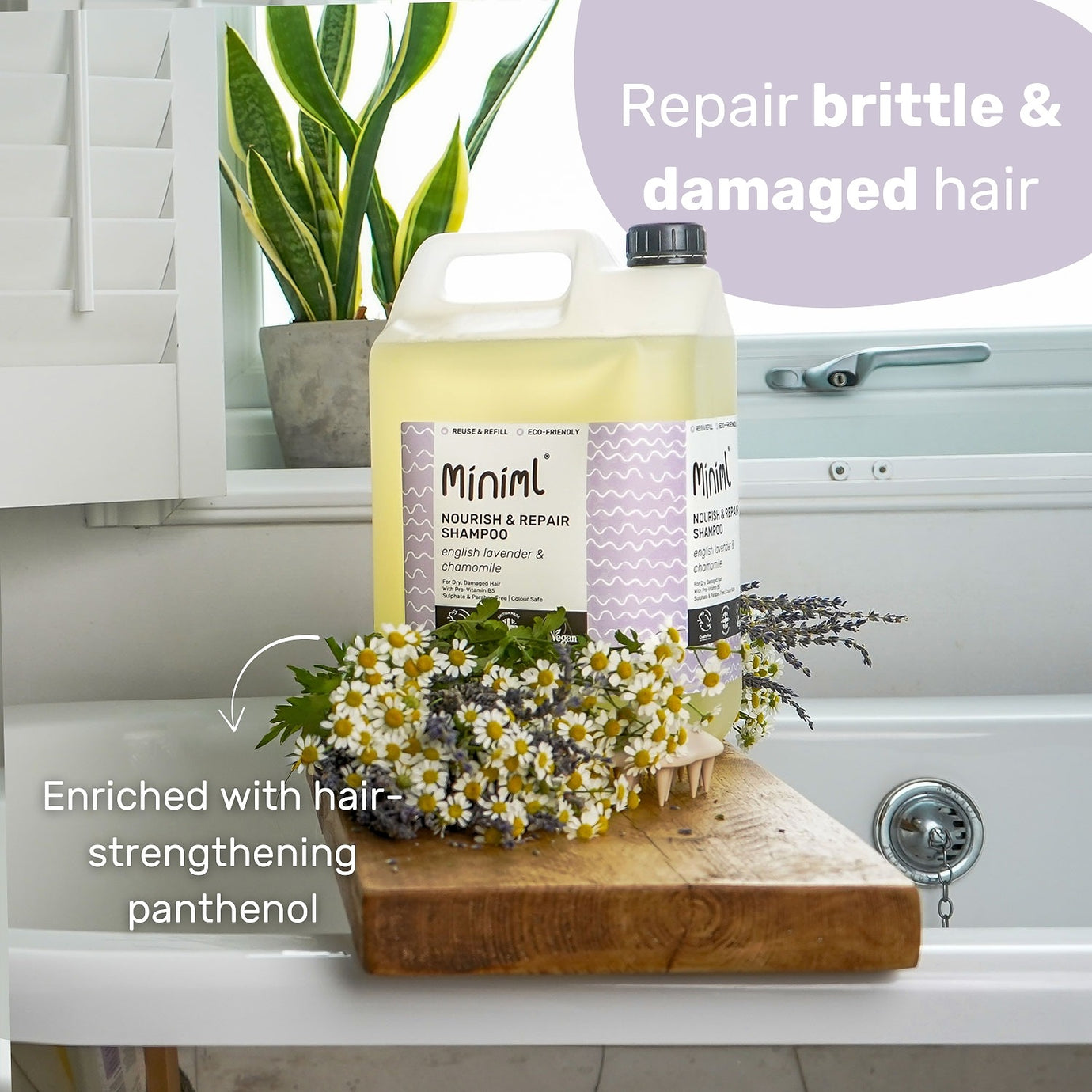 Infused with Panthenol, our nourishing and repair shampoo will treat your damaged strands and split ends whilst offering a soothing effect for your scalp with the help of natural Lavender and Chamomile Oils. Use daily to gently cleanse your hair, leaving you with beautiful results.