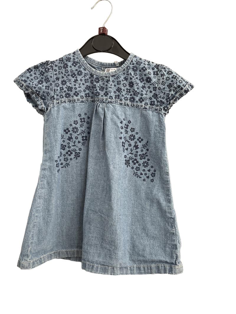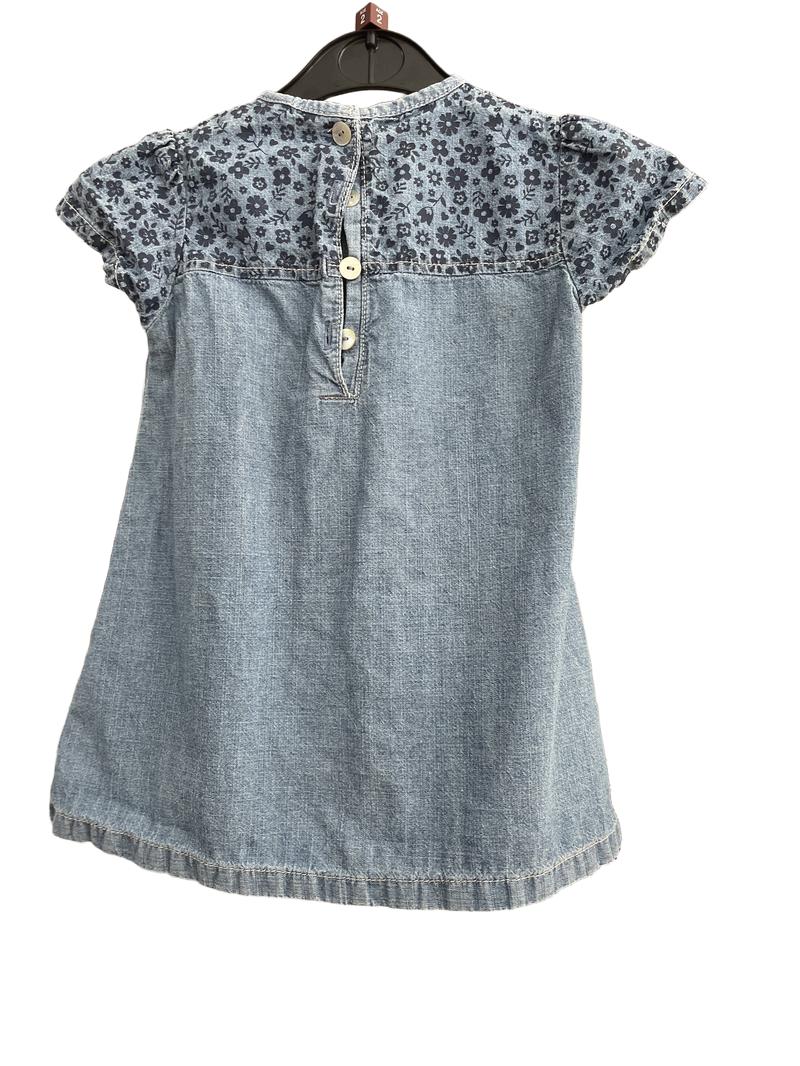 Preloved Alana - Denim Floral Print Short-sleeved Dress (2-3y)