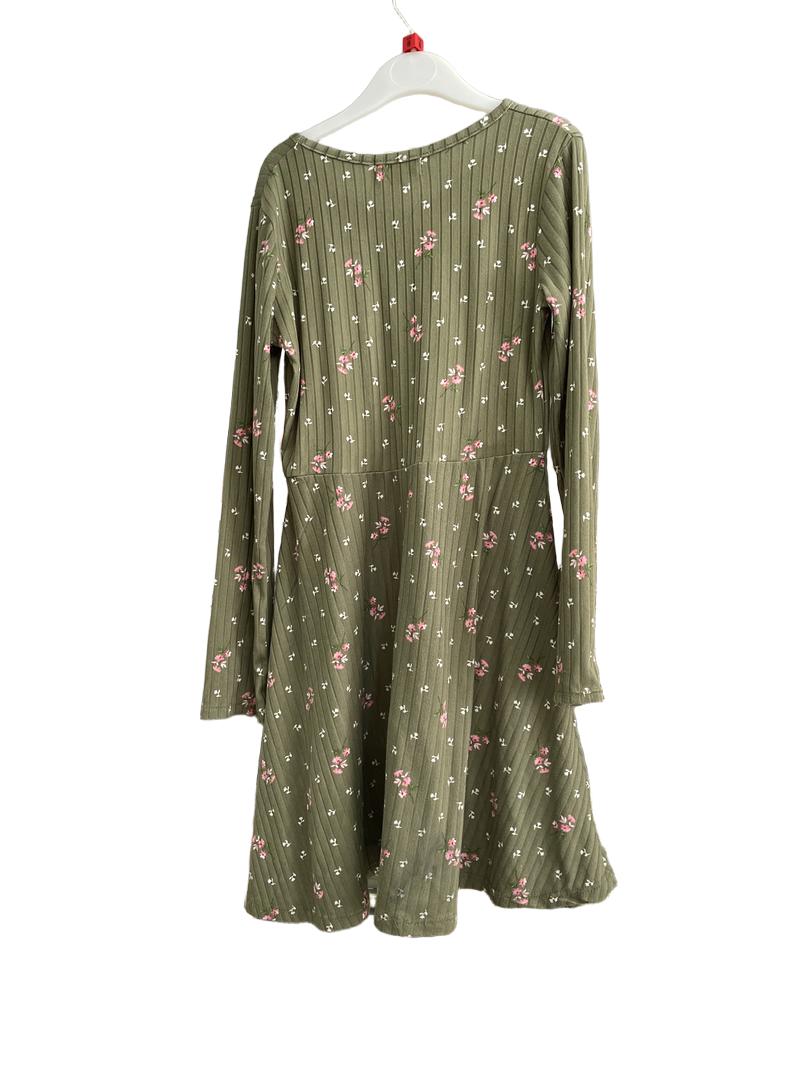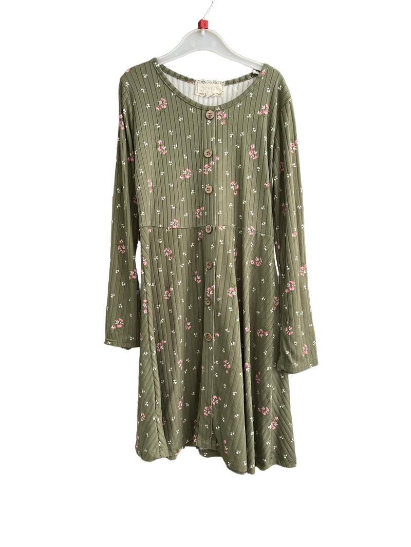 Preloved Btween - Green Floral Print Long-sleeved Ribbed Dress (8-9y) - Dress