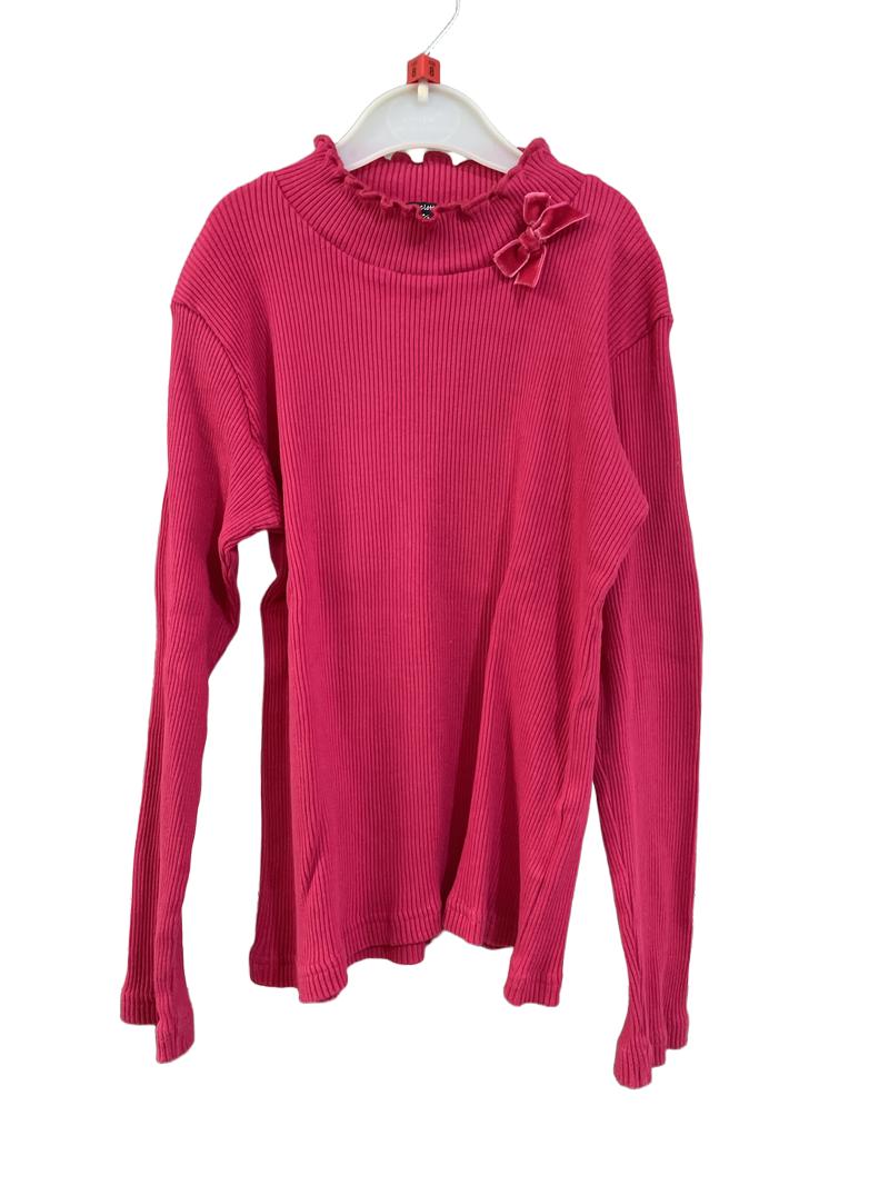 Preloved Chelsea Clothing - Top - Pink Rib Knit Long-sleeved Top With Ruffle Collar (8-9y)