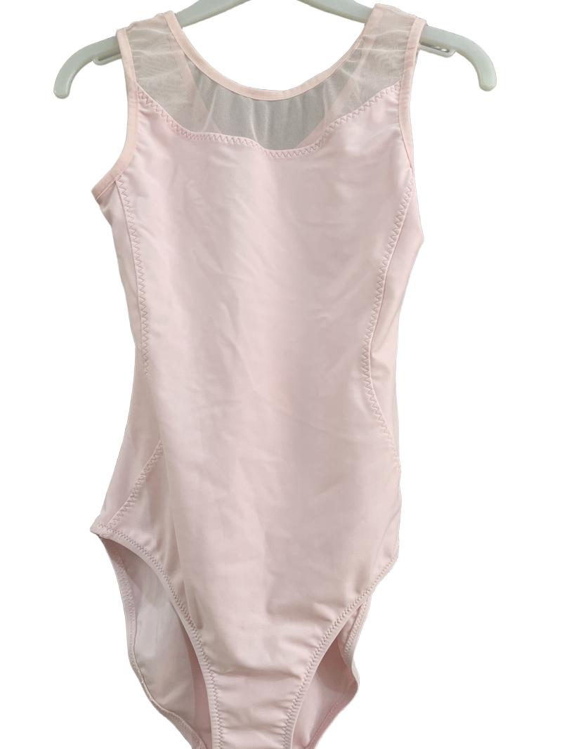 This lovely pale pink ballet leotard is perfect for your young dancer. It features a mesh panel at the neckline, adding a touch of elegance. This leotard is from Decathlon, so you know it's made for performance and comfort. It is in excellent condition.