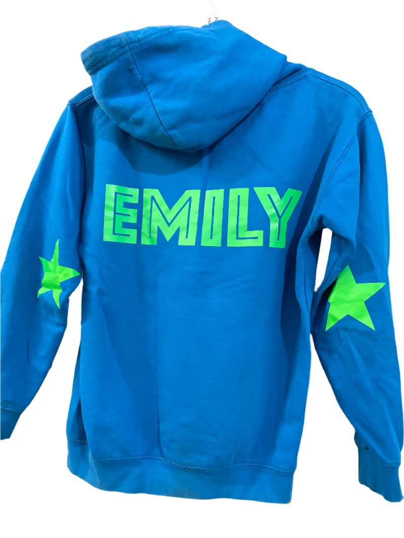 This vibrant blue Emily hoodie from Diddles & Squidge is ready for adventures! The bright green star details add a fun, playful touch, perfect for everyday wear or layering. Made from soft, durable material, it's perfect for keeping your little one cozy and stylish. This preloved hoodie is in excellent condition, ready for a new home and lots of adventures!