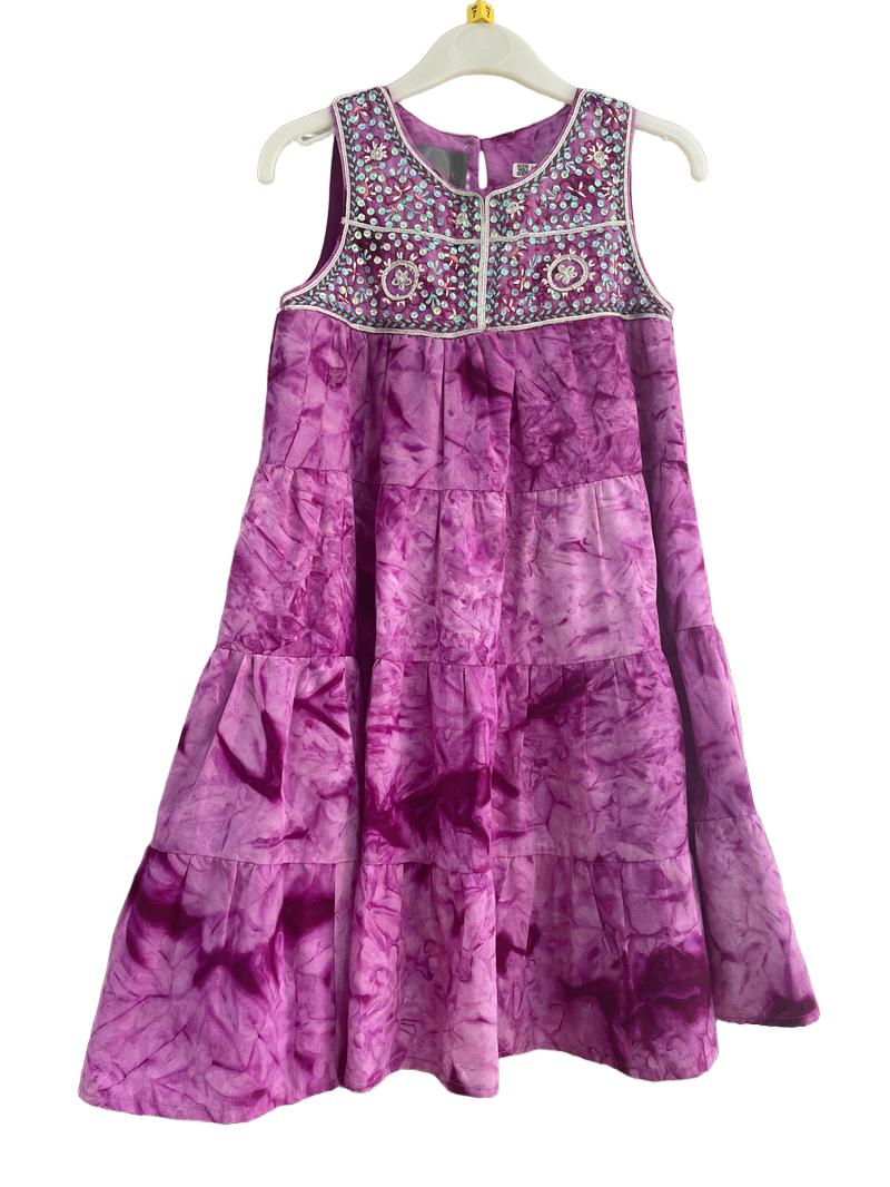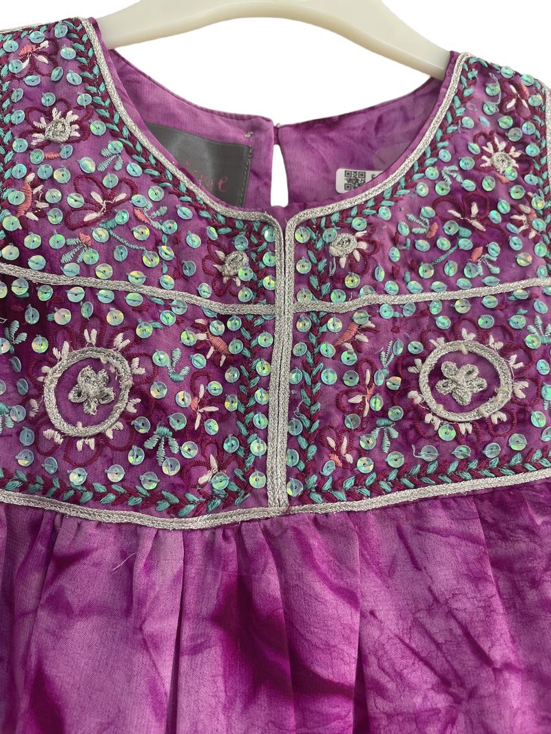 Preloved In A Dickie - Purple Tie Dye Sequin Sleeveless Dress (7-8y) - Dress
