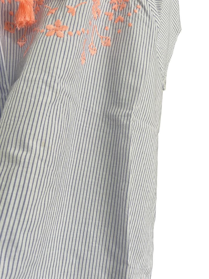 Preloved Joules - Blue White Stripe With Neon Embroidery Flutter Sleeve Top (7-8y)
