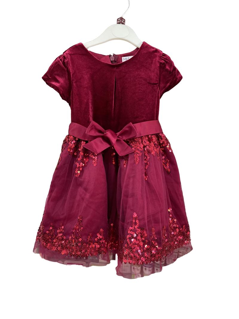 Preloved Marks & Spencer - Red Velvet And Sequin Tulle Short-sleeved Party Dress (18-24m)