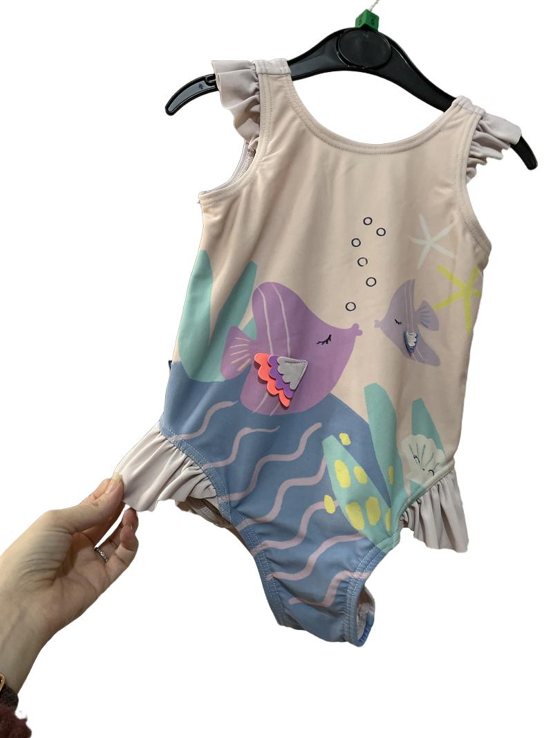 This adorable Marks & Spencer swimsuit is perfect for your little one's next pool or beach trip! Featuring a charming pink fish design on a pretty blush background, it's both stylish and fun. The ruffle detailing adds a touch of sweetness, making it ideal for any water adventure. Give this gorgeous swimsuit a new lease on life and make a splash at the pool!