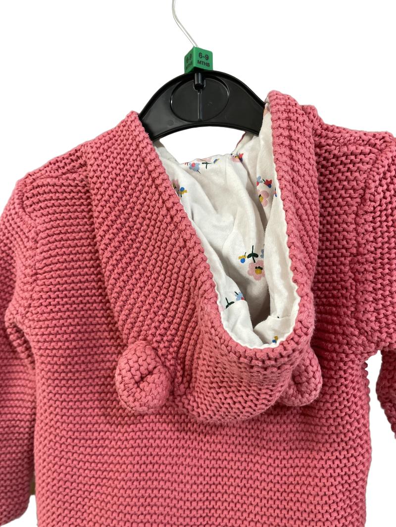 Adorable pink knitted cardigan by Marks & Spencer, perfect for keeping your little one cozy and stylish. This sweet cardigan features a unique floral print lining in the hood for an added touch of charm. A great addition to any baby's wardrobe!