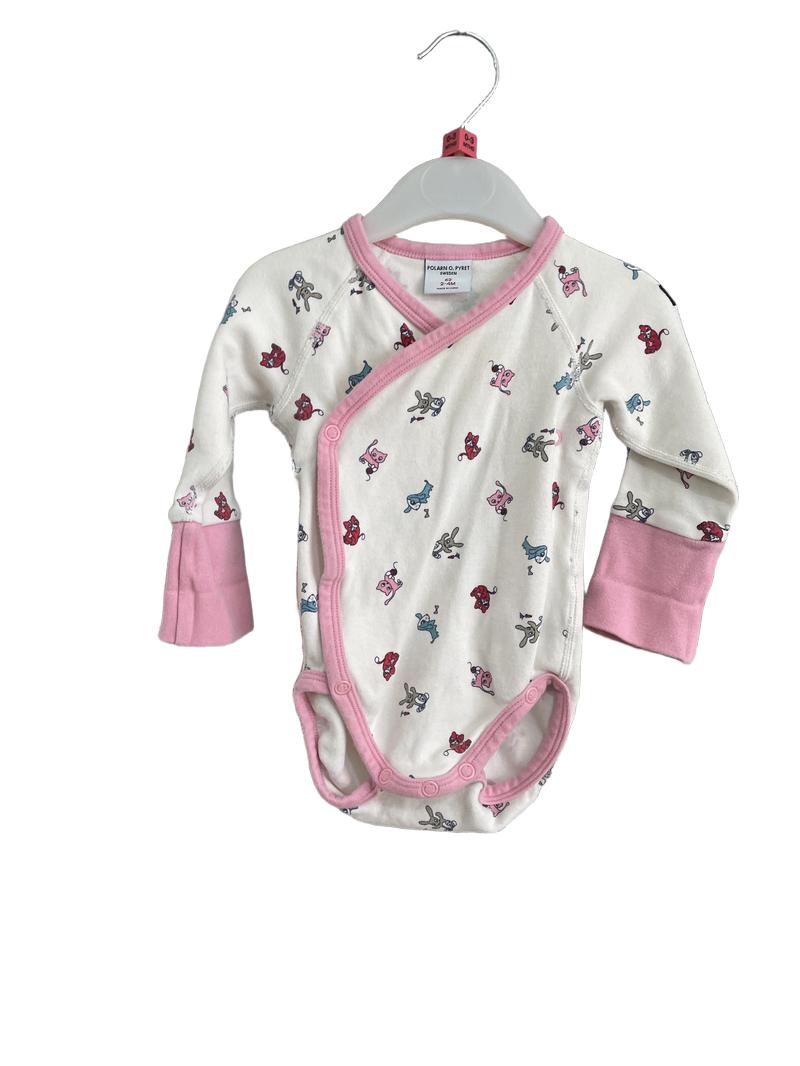 Preloved Polarn O. Pyret - Pink / White Animal Design Bodysuit (2-4m) - Onesie