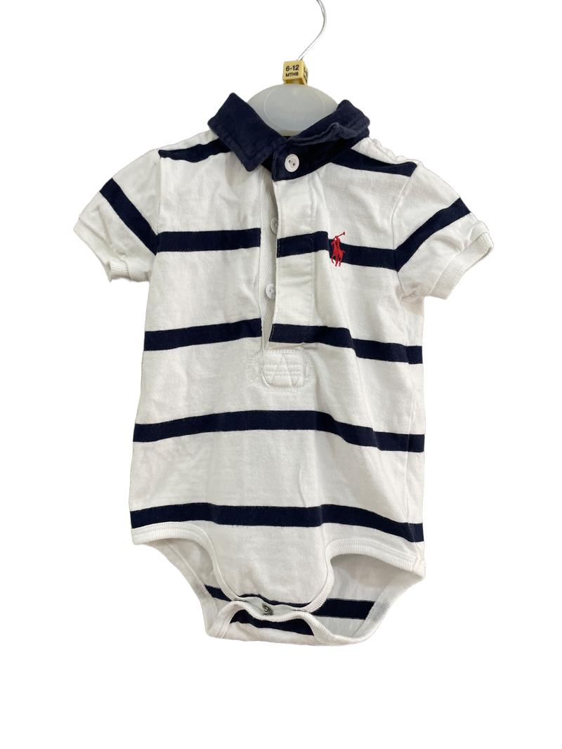 Preloved Ralph Lauren - Blue White Polo Shirt Onesie (6-12m)