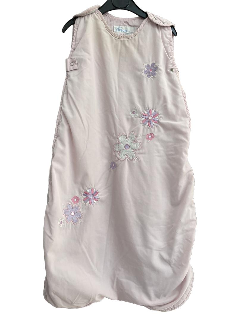 Sweet dreams are made of this! This preloved The Dream Bag sleep bag is perfect for keeping your little one snug and comfortable all night long. Made from soft, breathable material, it's ideal for cooler evenings. The pretty pink and purple floral embroidery adds a touch of whimsy. This sleep bag has a 2.5 tog rating and is suitable for babies aged 6-18 months. There is a small mark, as shown in the images.