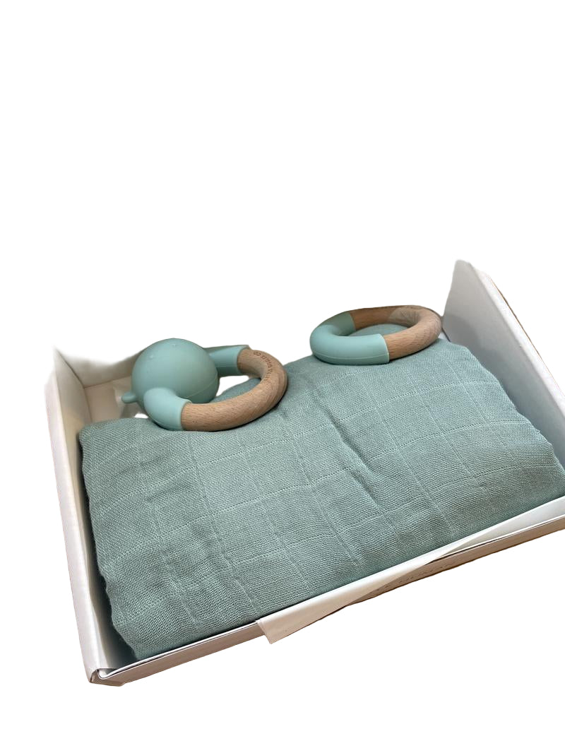 Preloved Toys - Little Teether & Muslin Set, Green, NEW In Box - Little Giggles Co