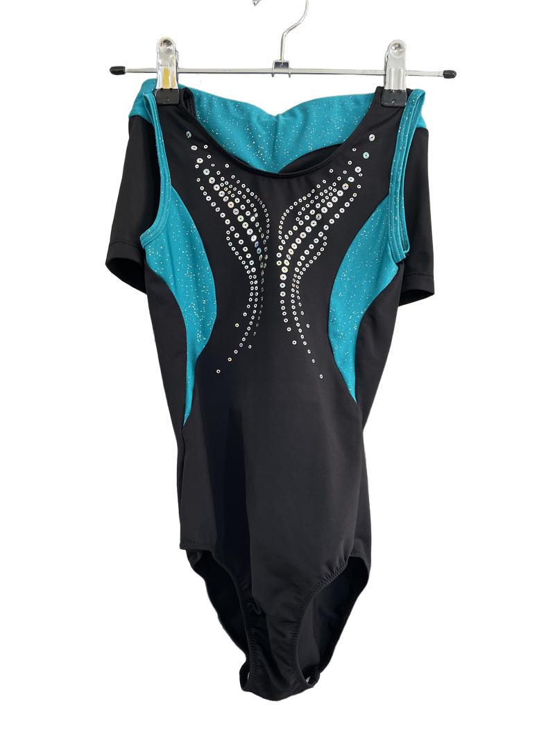 Preloved Unknown Brand - Black Green Sequin Leotard And Shorts (7-8y)