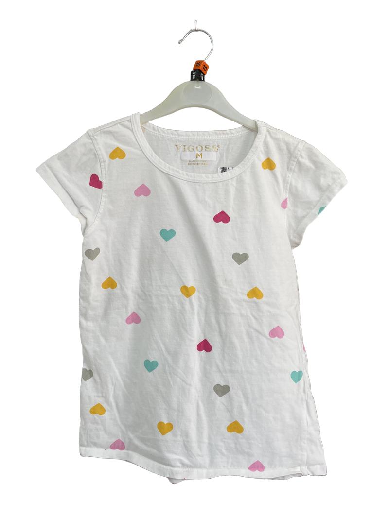 Preloved Vigoss - White Heart Print T Shirt, Medium (10/12) (10-11y, 11-12y)